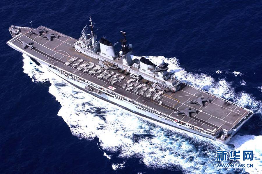 中國第一艘航母還在改造,看看美國航母大片中,航母早就被當作電影道具。世界上已經有很多國家有航空母艦,中國改造瓦良格號也算是航母建設的起步。海洋比陸地大,而且海洋有公海,很顯然,航母是海洋未來的主要“工具”。自然界有一個亙古不變的法則,那就是強者生存,我們中國雖然不主張武力,但是事實就是沒有堅強的武力,誰都會欺負你。這張2006年4月21日公布的照片顯示,英國皇家海軍“卓越”號的船員在甲板上列隊排出“80歲生日快樂”,慶祝英女王的80壽辰?!白吭健碧枌儆谟盁o敵”級航空母艦,1982年開始在英國海軍服役。新華社/法新