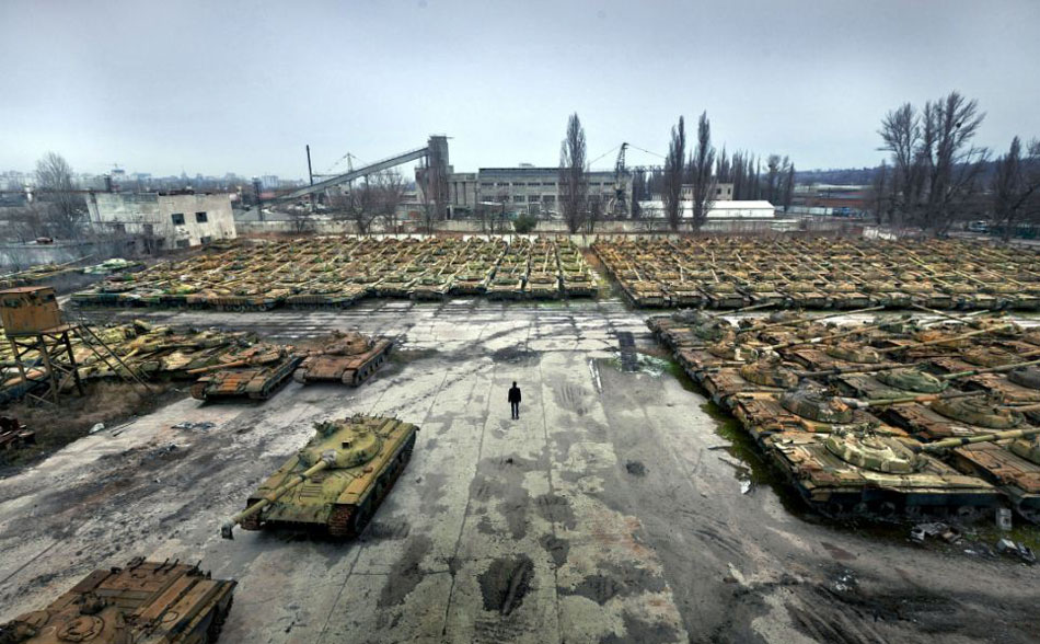 烏克蘭坦克墳場 烏克蘭400多輛坦克堆在坦克墓地生銹