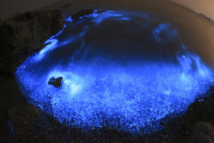 大連現(xiàn)熒光海奇觀 海水里的微生物鞭毛藻發(fā)光成熒光海水