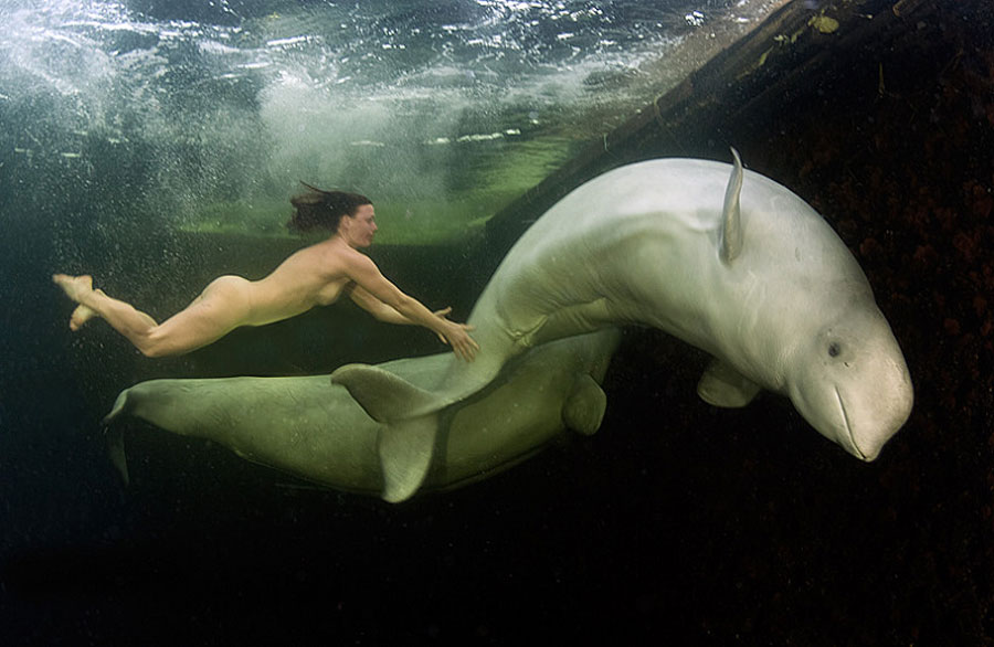 俄女潛水冠軍全裸冰下戲白鯨。據英國媒體16日報道,近日,兩屆世界自由潛水女子冠軍、俄羅斯美女納塔莉亞·阿夫先科(Natalia Avseenko)為了完成實驗,聽從了海洋學家的建議,脫光全身的衣服,在零度以下的寒冷海水中,赤裸全身與兩頭白鯨同游嬉戲,可謂是真的“回歸自然”。