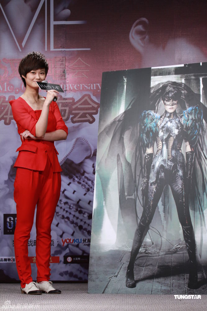 演唱會(huì)前一身大紅衣服接受記者采訪。昨天,李宇春2011武漢演唱會(huì)在京正式啟動(dòng),李宇春一身紅裝現(xiàn)身現(xiàn)場(chǎng)與歌迷互動(dòng),暢談心聲。李宇春這身紅衣服很喜氣,是在強(qiáng)調(diào)女人味吧。
