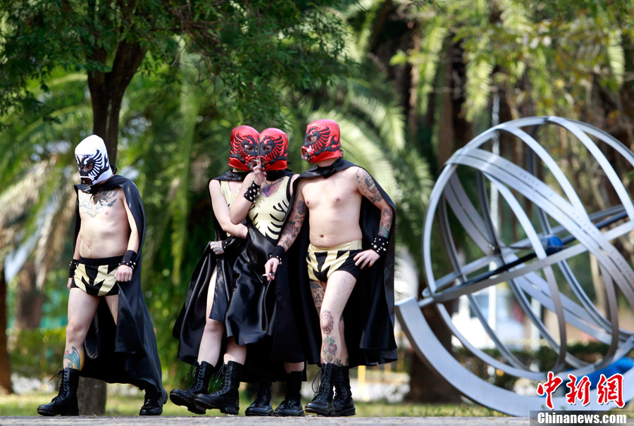 只差一個字。巴西圣保羅時裝周期間,一場時裝秀在室外上演,其中幾名古怪“超人”造型的