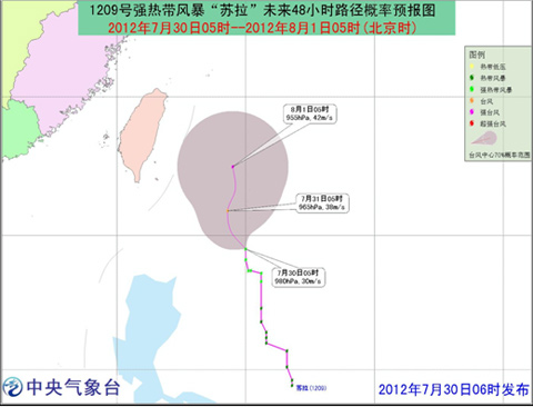 中央氣象臺發布未來48小時蘇拉路徑概率預報圖