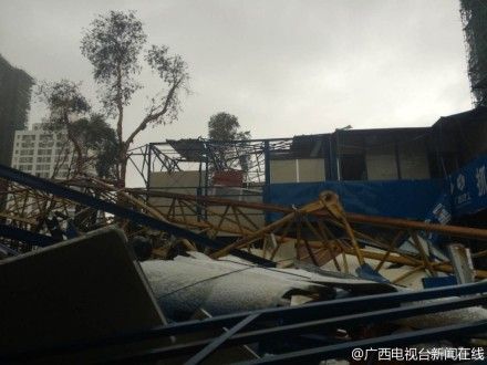 廣西北海臺風威馬遜,一個百米塔吊攔腰折斷造成2人死亡5人受傷