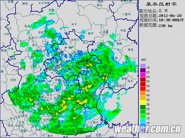 6月28日10時30分至13時24分北京地區雷達圖