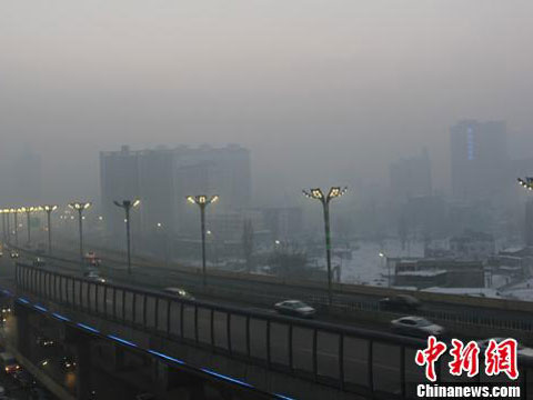 新疆烏魯木齊24日出現(xiàn)大霧天氣。 楊喆 攝