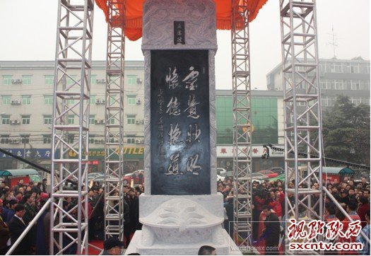 為了弘揚中華民族優秀文化傳統,立體展現陜西當代書法藝術最新成就,以實際行動加快文化強省建設,12月30日上午,“中華魂”——山楓篆書《道德經》巨碑群組揭幕慶典暨《墨韻天歌》山楓書法藝術展在陜西歷史博物館隆重開幕。本次慶典特別邀請到了央視著名主持人王剛擔任主持,他與現場觀眾一同見證了巨碑群組揭幕的精彩瞬間。中共陜西省委宣傳部、省文化廳、省僑聯、陜西道教協會、陜西佛教協會以及少林寺等各界代表出席了揭幕儀式。