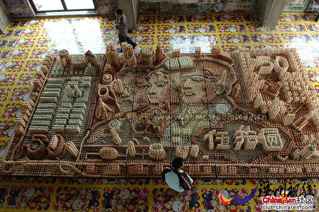 世界最強(qiáng)的人民幣版本哦,用雞蛋擺出的人民幣真是最大最立體感的人民幣版本。