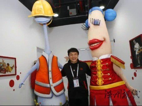 大哥就是大哥啊,站在這兩個“巨人”粉絲旁邊也絕對神氣.. 這兩個大家伙也很贊啊,查了查原來是快樂工坊小電影里的,一個叫勞模,一個叫喇叭姐姐。羨慕ing,能從小電影里走出來跟大哥親密接觸,我也是個卡通就好了。。。哦my god 喇叭的睫毛..堪比三毛的頭發..如果你有6根睫毛..你會怎么刷呢?突然想到一道網上流傳的智力題..哈哈