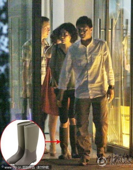 直到半夜十二點多,李亞鵬、王菲一行人才浩浩蕩蕩地從包廂出門散去。李亞鵬一馬當先出門四處張望,不知道是不是在看還有記者在否?看李亞鵬走路的樣子有些搖晃,相信是喝了不少酒的緣故。而王菲則緊緊跟在老公身后,此時記者才發現王菲當天還是一身潮牌打扮,尤其是腳上的時尚雨靴更是十分顯眼——已經年屆不惑的王菲還能有如此時尚的穿戴打扮實在無愧天后的稱號。