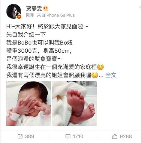 2016年9月30日,賈靜雯公開(kāi)消息,已懷孕4個(gè)月。