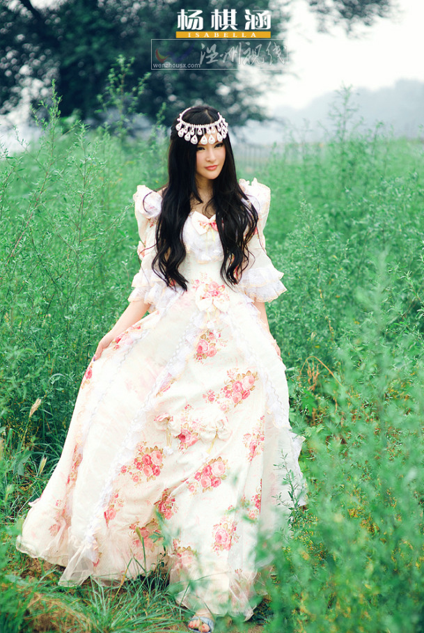 花邊的比較象韓版風格,特別是大蝴蝶結和大量的蕾絲花邊,而楊棋涵 moko美女的頭飾又像是西域風格的裝飾,當然也有歐洲古典的這種裝飾物,畫面效果非常好,楊棋涵 moko的造型和傳情都讓人感覺非常親近和溫柔,楊棋涵 moko美得高貴,美得典雅。
