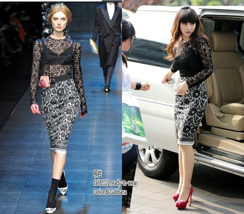 柳巖現身上海美博會,2012上海美博會柳巖一襲Dolce&Gabbana 2012秋冬系列黑白蕾絲透視洋裙亮相,引發粉絲瘋狂尖叫。其實柳巖穿什么亮相,粉絲都會尖叫,因為粉絲就像戀愛中的男女,是看不清美丑的。柳巖現身上海美博會穿的是Dolce&Gabbana 2012秋冬系列透視裙,這身衣透視裙顯得柳巖腰圓、粗胳膊、短脖子,當然柳巖的標志性大眼袋和衣服無關,怎么看都看不出柳巖的漂亮。