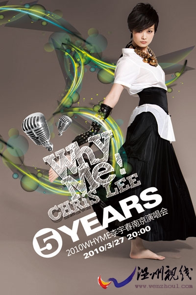 3月1日,天娛旗下藝人李宇春以新造型出鏡拍攝的 “Why Me演唱會”海報終于曝光。“Why Me”作為李宇春的個人音樂品牌已在業內打下良好口碑。據悉,演唱會現已進入了緊張的籌備階段,“2010 Why Me李宇春南京演唱會”終于在眾人的期待中將于2010年3月27日在南京拉開了序幕。