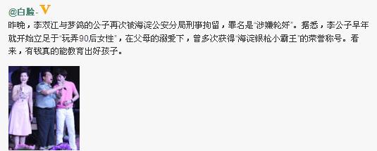 李公子出身于1996年4月,他自己也是90后,所以爆料稱“李天一早年就開始玩弄90后女性”說法也是合理的,獲得“海淀銀槍小霸王”的榮譽(yù)稱號(hào)實(shí)至名歸。