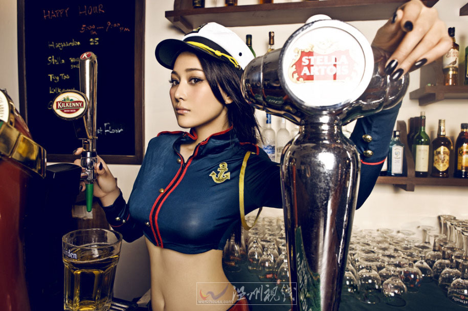 張馨予啤酒妹造型有點西化,在吧臺的這幾張照片,特別是羽毛裝的這張張馨予照片,看不懂什么意思,但是至少不像張馨予的風格了。有時候時尚就是一種雜七雜八的元素堆砌,那也是時尚人士自己都沒有辦法詮釋的時候,一種故弄玄虛。張馨予的這組寫真,除了看出一點性感還有牛仔的風格。